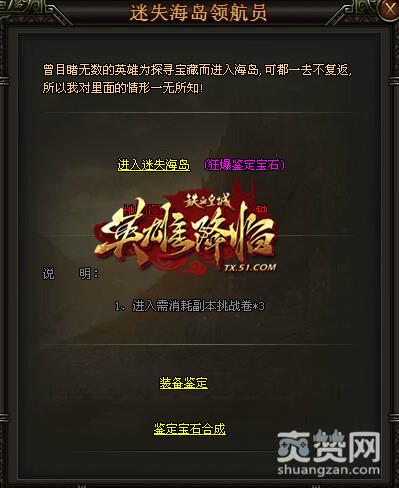 曾目睹无数英雄为探寻宝藏而进入海岛,可都一去不复返,所以我对里面的情形一无所知,这一次,我终于下定决心要去揭开宝藏的真面目。花费3个副本挑战卷轴终于打开了迷失海岛的大门,原来大家口耳相传的宝藏就是鉴定宝石,小怪爆绿色鉴定宝石,鉴宝大师则有几率爆蓝色、金色鉴定 宝石,虽说冠上了宝石的称呼,但此物究竟有何魅力?原来通过鉴定宝石可以鉴定装备的属性,绿色。蓝色、金色分别可以鉴定出不同的属性,鉴定可达到9星,也就是最高星级,当然得到的属性也就更高,怪不得无数英雄为此折腰,这简直就是51《铁血皇城》最大的福音!