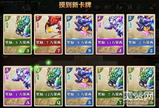 此外,当玩家集齐套牌时,系统会提示已集齐,并给予额外的套牌特殊奖励。当一副扑克54张全部抽取完之后,就可以点击确认领取丰厚的银两奖励,并重新开始新的一轮。每小时累计获得银两最高者还可获得给力称号——赌神。