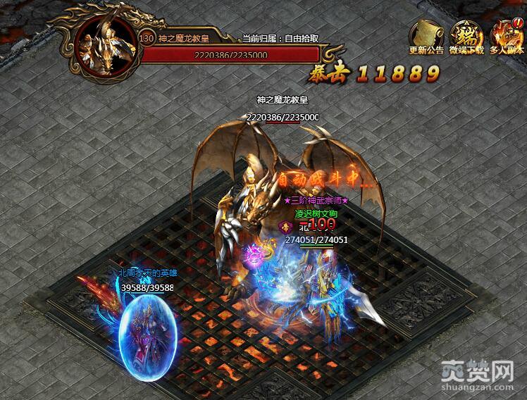 第39关BOSS:神之震天魔神,等级120级,血量1659000点,推荐115级攻略,推荐战力115万再攻略。