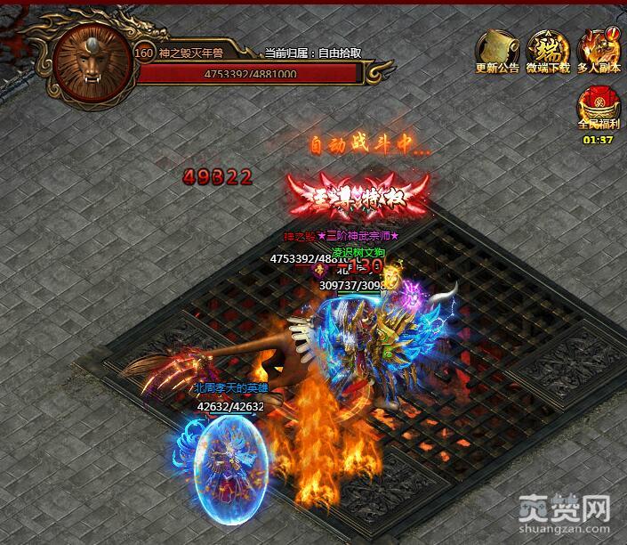 第57关BOSS:神之毁灭年兽,等级160级,血量4881000点,推荐120级攻略,推荐战力135万再攻略。