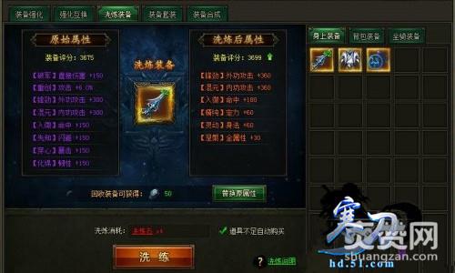 装备的洗炼可以改变装备中极品属性的条数、类型以及数值。装备等级越高、品质越高,那么装备洗炼所需要消耗的洗炼石也就越多。玩家洗练装备后,可拥有5-8条附加属性效果哦。装备所洗练出来的属性都是随机的。洗炼装备可增加装备的洗炼分数。洗炼分数越高,寒刀装备回收可获得的洗练石也就更多。