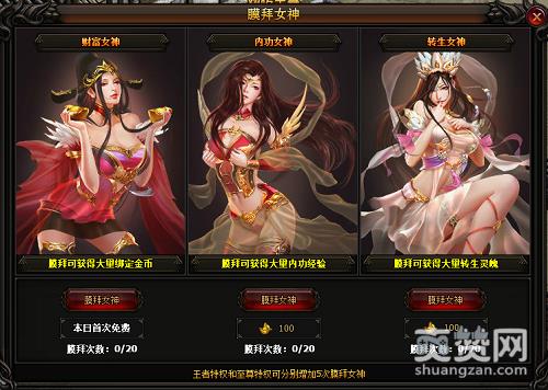 在今天这特殊的节日里,连空气中都充满着粉色花香的味道。想要获得心仪女神的芳心,当然最好是每天去膜拜膜拜女神啦。《烈火至尊》膜拜女神活动是每天开启的,玩家每日有20次膜拜次数,不同的女神带来的祝福不同,财富女神每日膜拜之后能获得大量绑定金币,内功女神每日膜拜可获得大量内功经验,转生女神每日膜拜获得大量转生灵魄。王者特权和至尊特权可以分别增加5次膜拜女神的机会。玩家根据自身发展的需要去膜拜就可以了。