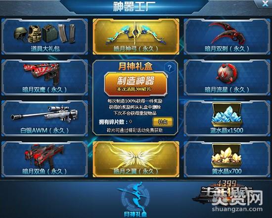 《4399生死狙击》神器工厂刚刚上线,立刻为小伙伴们带来阿尔忒弥斯的馈赠——月神礼盒。在月神礼盒中,玩家们将可以获得暗月系列武器或者皓月神弓、皓月之翼。