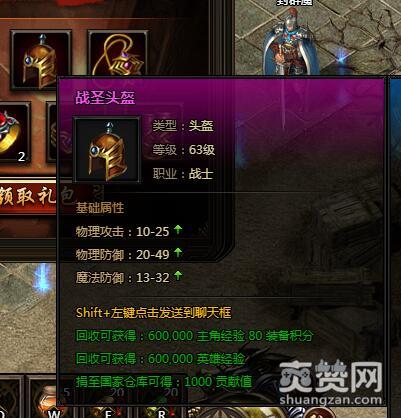 战圣头盔。63级战士头盔。提欧物理攻击、物理防御以及魔法防御的略微增长。