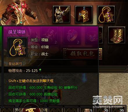 战圣项链。65级战士项链。提欧物理攻击的少许增长。