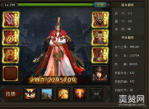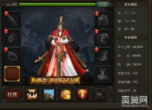 这两张图是孙策在快满级的情况下,穿装备带武将和不穿装备不带武将的差距,玩家可以借鉴一下。