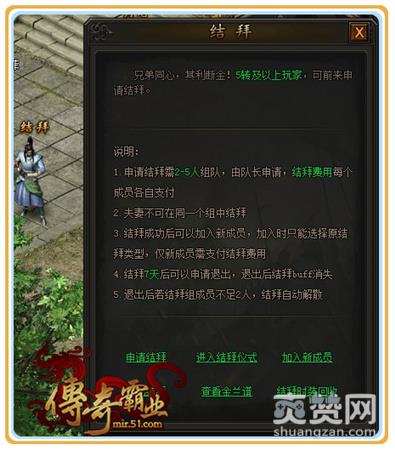 少年热血,交结五方雄。肝胆洞,毛发耸。立谈中,死生同,一诺千金重。你是否还记得,从银杏小村出发,在僵尸洞不打不相识的兄弟?踏过沃玛森林、祖玛阁、石墓七、直至君临沙城成为传奇主宰。岁月匆匆十七载,风雨牵挂霸业宏图,陪伴一生戎马,是生死好兄弟。而今,51《传奇霸业》结拜系统奏响号角,曾经的兄弟,此时不归,更待何时? 苍天在上,厚土在下,今日我愿与你结为异姓兄弟,从此有福同享,有难同当,此言此誓,日月共鉴。