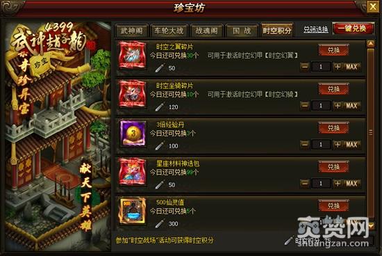 时空积分可在珍宝阁兑换时空战甲幻化。