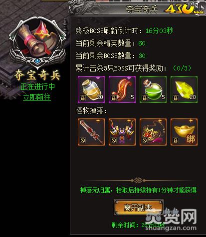 在43u《魔魂之刃》中,无论是王城争霸、怪物攻城、帮会BOSS,还是夺宝奇兵,无不是一场场酣畅淋漓的战斗!加入这些战斗玩家才会尽情的体验到刷BOSS的快感!今天小编要详细的来介绍一下夺宝奇兵活动,一起来了解一下吧!