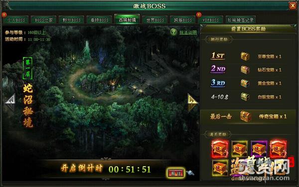 神秘的沼泽,离奇诡异的秦岭,古城秘境全新的地图场景带你前往年代悠久的荒凉古城。古城一天开放四次,每次持续30分钟,玩家角色到达160级后即可进入尸变怪物聚集地,在有限的时间内逐层击败尸变BOSS,收集全新的官职装备。集齐装备后玩家们不仅能享有套装属性加成,更有强有力套装技能、称号及炫彩法阵光环围绕,绝对是一个赤裸裸的实力展现。