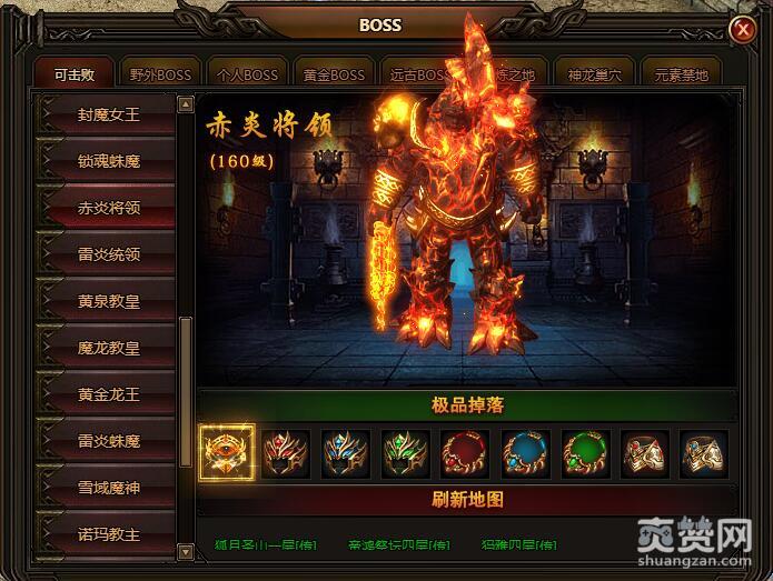 在刷新地图方面:赤炎将领存在的地图有3个。分别是狐月圣山一层、帝鸿祭坛四层和玛雅四层。三张地图上的BOSS等级属性都相同,掉宝也都差不多,没有孰强孰弱之说。