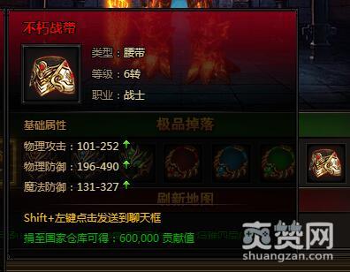 在掉落极品道具方面:赤炎将领会掉落赤炎将领徽章、不朽战盔(6转)、不朽法盔(6转)、不朽道盔(6转)、不朽战链(6转)、不朽法链(6转)、不朽道链(6转)、不朽战带(6转)以及不朽法带(6转)。