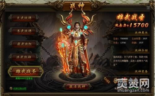 青龙套装可以在探宝活动中获取,只要早一步拿到青龙套装,就能先人一步积累起足够的精血值,血脉提升,我们就能与战神合体,从而无敌天下。诸多战神中神武战圣当属最强者,甚至可以单人撸翻200级BOSS,不过需要玩家花费元宝激活。