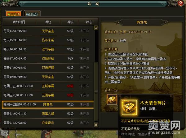 活动时间:开服第一、第二天20:00-21:00, 每周一四日 20:00-21:00。