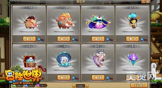 在腾讯《冒险世界ol》的宠物小屋中,玩家可以开启宠物的变幻术界面,目前游戏内共有64种完全不同的宠物外形可供变幻,其中不但包含各种小怪物外形,还有各种Q版BOSS以及节日限定外形。