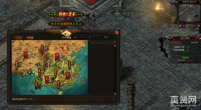 进入活动后30秒,所有人集中于准备大厅,可在大地图上选择出生点;30秒倒计时后,所有玩家出生在已选择的出生地图随意位置(未选择出生点的玩家将会随机传送)