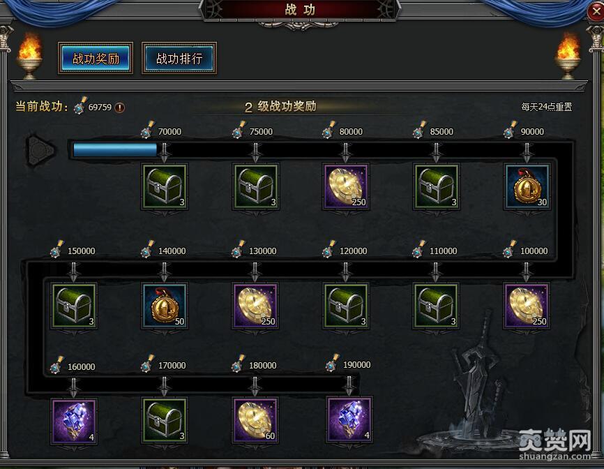 75000战功。精钢装备碎片宝箱*3。使用后随机获得一件精钢装备碎片,共计3件。这个装备碎片同样也难逃被分解的命运。
