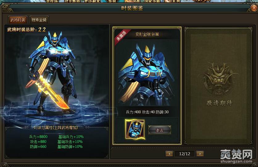 孙策的装扮目前只有两套,名字分别叫做华贵公子·孙策和变形金刚·孙策。