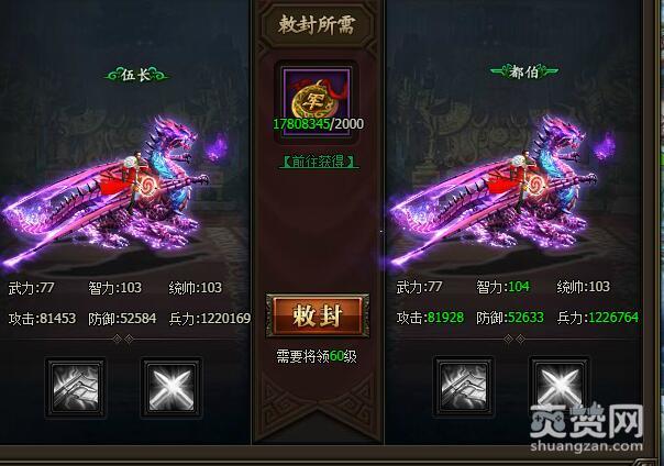 从伍长到都伯 敕封所需军功2000,需要将领60级