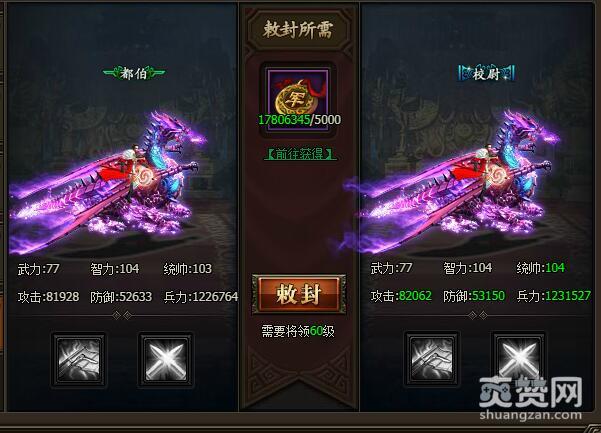 从都伯到校尉 敕封所需军功5000,需要将领60级