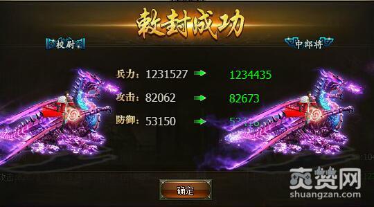 从校尉到中郎将 敕封所需军功10000,需要将领60级