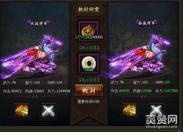 从伏波将军到奋威将军 敕封所需军功40000,美玉2个,需要将领60级