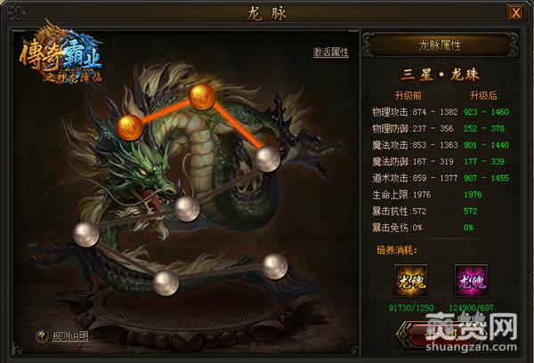 神龙的降临,为四方英雄带来新的战力要求,因此,在37《传奇霸业》周年庆新版本中,吞吐龙珠,获取龙之骨髓和血脉,就能突破自身限制,荡响龙魂之声。玩家达到80级,开启龙脉系统,培养七星龙珠,便可激活龙脉觉醒属性,阶数越高,属性越强,培养至12阶时还可获得狂拽叼炸天的“神圣庇佑”技能。