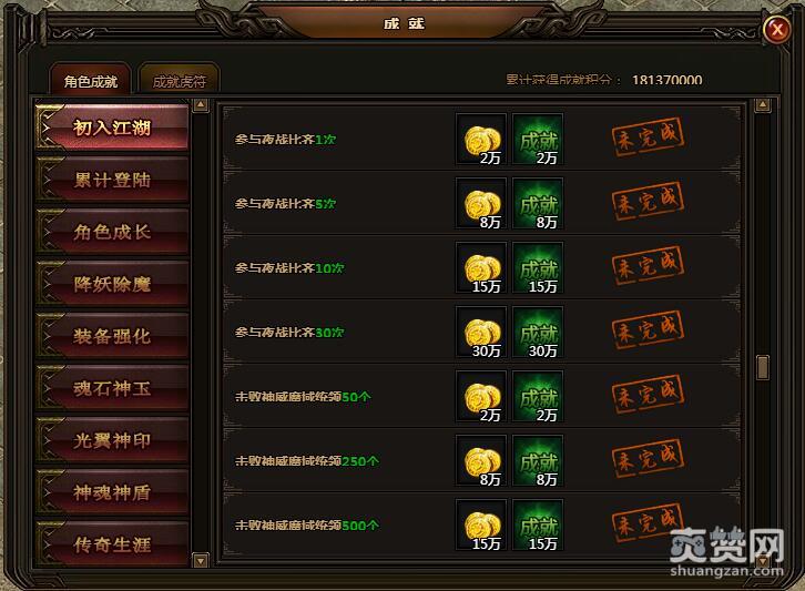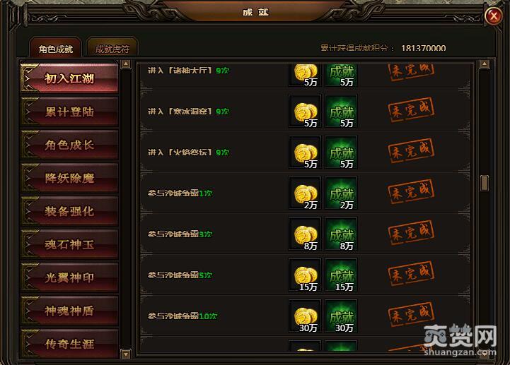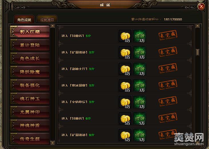 进入“封魔谷”9次。金币5万,成就5万。