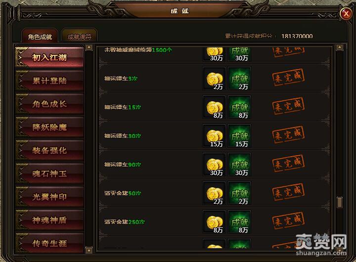 进入“诸神大厅”9次。金币5万,成就5万。
