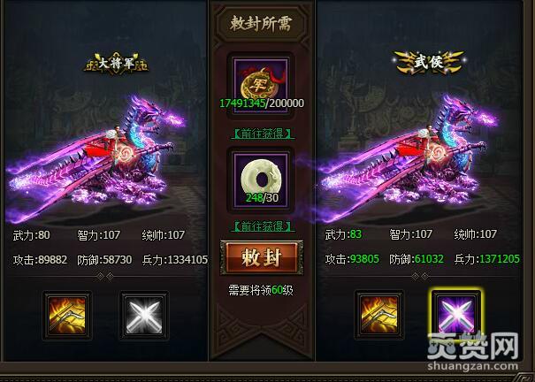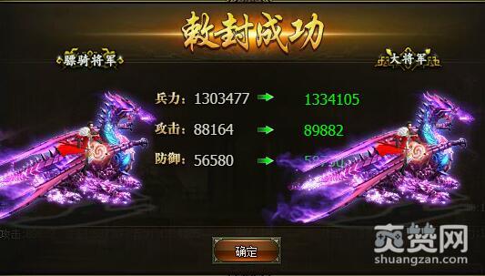 从大将军到武候 敕封所需军功200000,美玉30个,需要将领60级