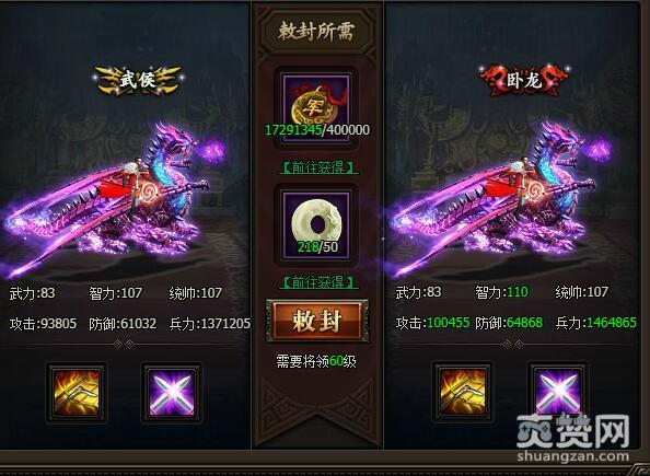 从武侯到卧龙 敕封所需军功400000,美玉50个,需要将领60级