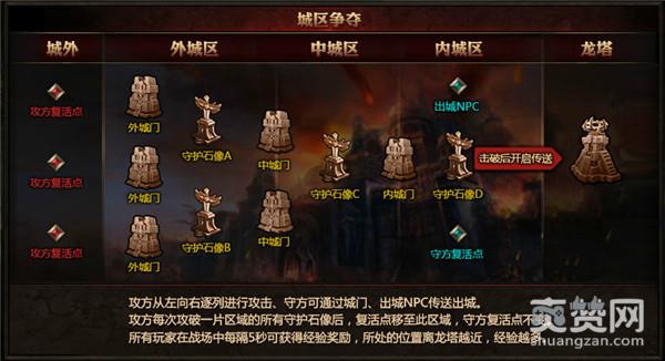 作为360uu《奇迹重生》里最精彩刺激的战场,攻城战也将有着严格的规则和完全不一样的玩法,接下来让小编为你详细介绍一番。首先攻城战将围绕着城区争夺说展开,攻防需要一路攻破外城门、中城门、内城门以及每一道城门后的守护石像这六道关卡,每一道城门的攻破,进攻方复活点也将随之前移,防守方复活点不变。在城区的争夺中,最后一道内城区的厮杀最为惨烈,双方复活点当所有城门攻破,龙塔的大门打开,最后的一场战斗便将拉开大幕!