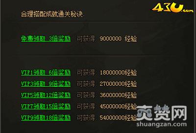 在43u《散人传说》中,玩家达到30级就可以参与炼狱刷怪啦!玩家每天有两次的炼狱机会,参与炼狱可获得300万经验奖励,当然玩家还可以选择多倍领取哦!这就厉害了!成为黄金特权经验还可加成10%哦!