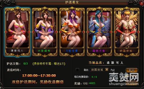 古往今来,只羡鸳鸯不羡仙的故事比比皆是,如果你仍形单影只,不能与佳人相处,亲密互动,那你可加入《烈火至尊》多倍护送的护送美女大军中,有美人作伴,实乃一大幸事。游戏中玩家达到65级后即可参与多倍护送护送美女活动,每天最多可参与三次。每天17:00-17:30更将开启双倍护送,获取双倍奖励!