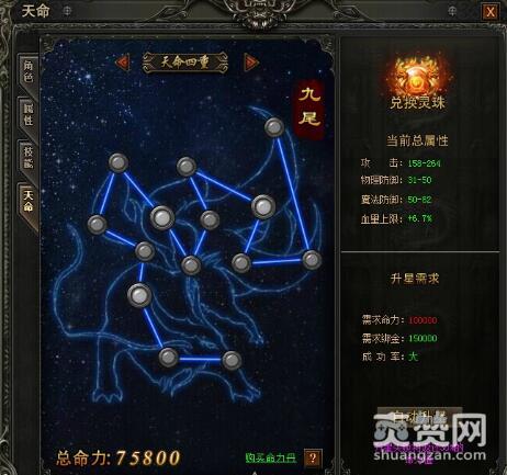 将天命升级后即可兑换灵珠,灵珠是一件装备,可强化、洗炼。灵珠可通过命力值兑换和升级,灵珠等级越高,属性加成越高。高级灵珠兑换时还需要星辰石道具,灵珠升级与天命等级挂钩,只有同时满足天命等级、命力值和星辰石需求时方可升级。