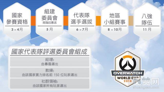 暴雪娱乐今日公布《守望先锋》2018 年世界杯消息,今年小组赛事的主办国家分别为法国、南韩、泰国及美国,上述四个国家将可无条件参赛,而即日起至第9赛季结束(美西时间4月28日),官方将追踪各国前150名玩家的平均实力排名(Skill Rating),前20名的国家将受邀参加《斗阵特攻》2018 年世界杯赛事;全球共计24个国家将拥有参赛资格。若单一主办国家的平均实力排名在前20名以内,则排名第 21 的国家将递补受邀参赛,依此类推。
