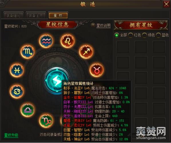 星纹分为3种类型,共12个星纹,每个星纹又分为5种品质,品质越高,属性越高。星纹可以升级,但不会升级品质,最高可升级到10级,等级越高,属性越高。星纹升级需要消耗星纹碎片,回收星纹也可获得星纹碎片。通过击败星之秘境BOSS或者个人BOSS以及玛雅宝藏可获得星纹或者星纹碎片。