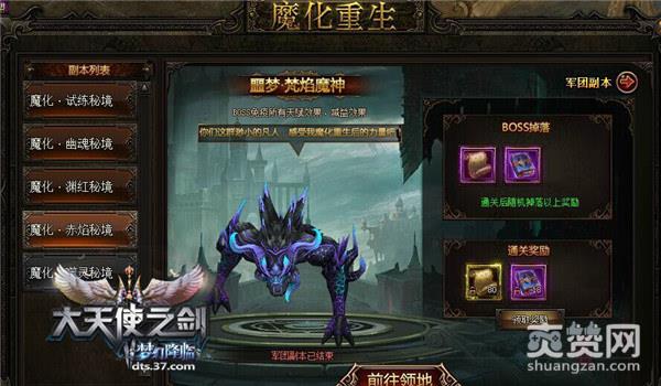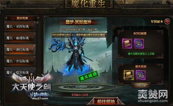 37《大天使之剑》的玩家在体验军团副本活动的期间,每通关3个军团副本,即会开启一关魔化重生副本,玩家在小房间清理完所有小怪后,则能够进入BOSS房击杀大BOSS,获得更高的奖励。