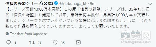 光荣特库摩旗下策略类游戏《信长之野望》系列全球出货量突破1000万。