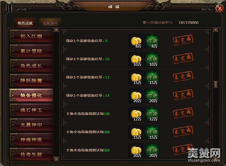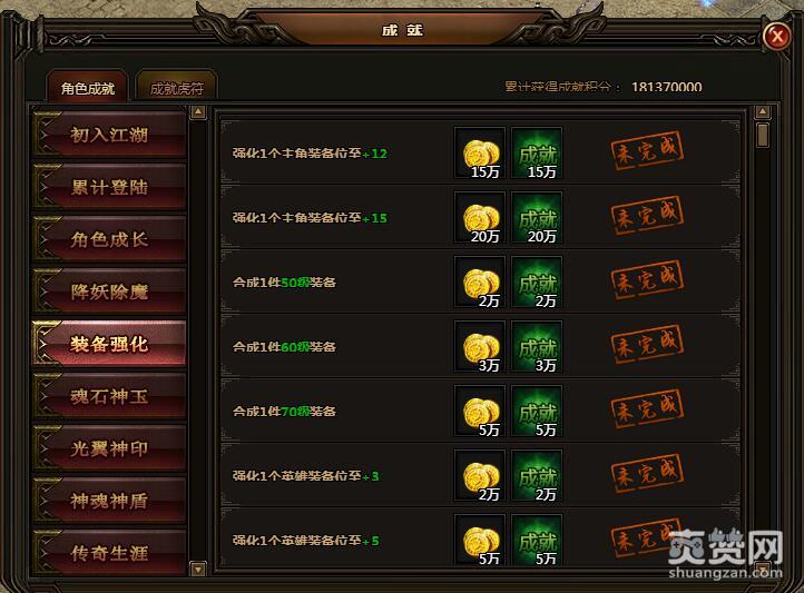 强化1个主角装备位至+12。可获金币15万,成就积分15万。