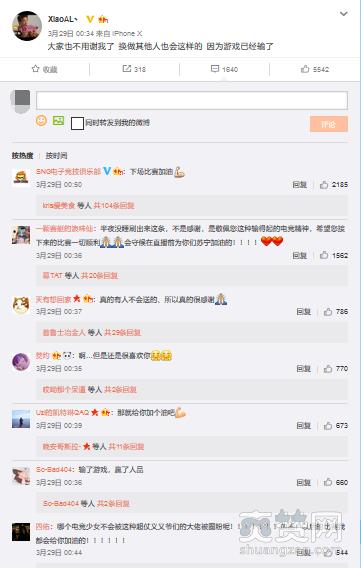 在28日的LPL联赛,RNG以2-0击败SNG,总算终结了连败。不过第二局比赛中,Uzi在最后一波团战斩获四杀,敌方仅剩XiaoAL存活,他却回城走出温泉送给了Uzi五杀,被粉丝大赞:“被圈粉了”、“输了游戏赢了人品”,XiaoAL微博关注量甚至一夜翻倍成长。
