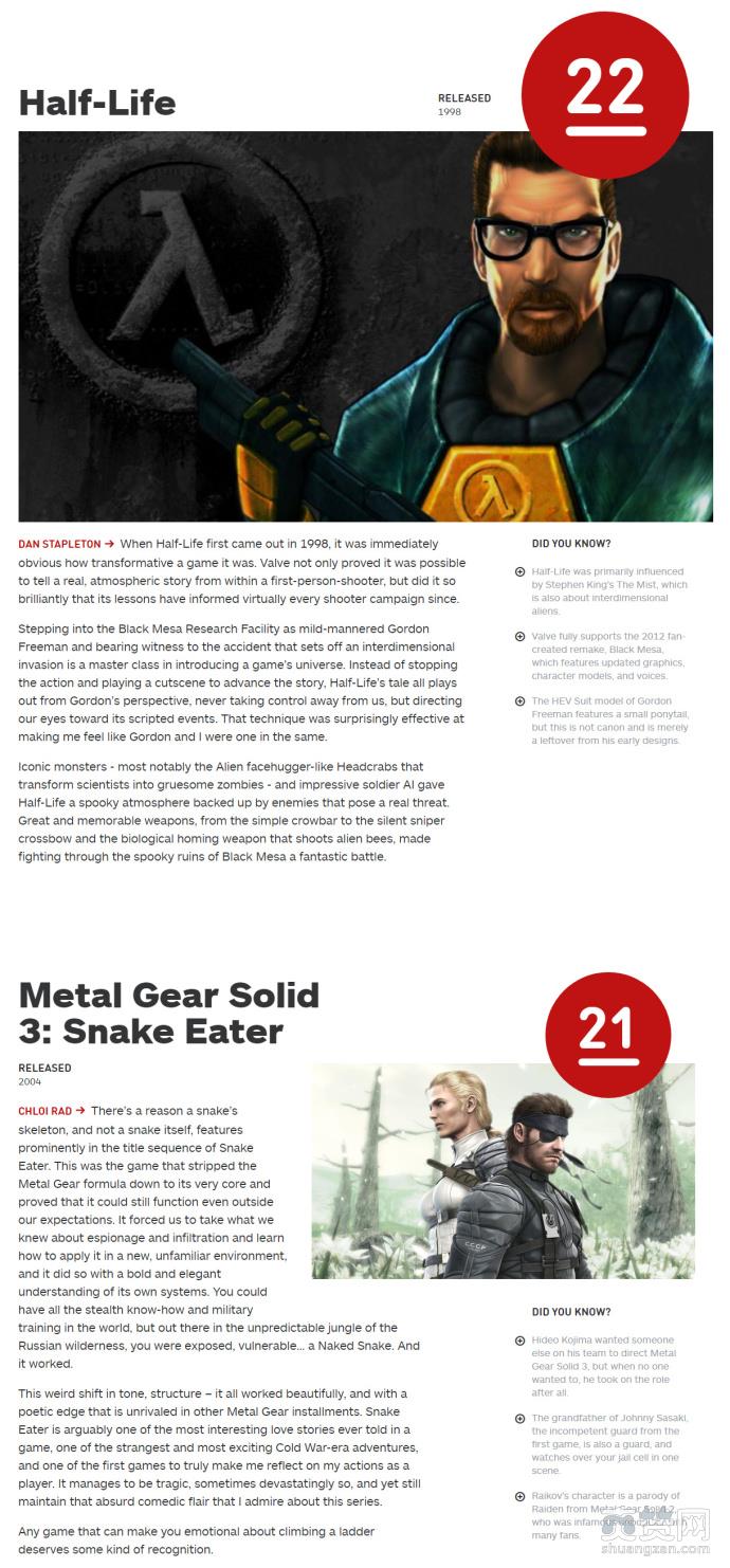 第24——21位:24《我的世界》、23《光环2》、22《半条命》、21《合金装备:食蛇者》