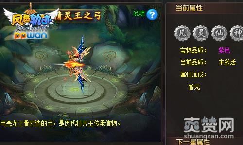 传说,精灵王之弓乃是用恶龙之骨打造的弓,为历代精灵王传承的信物。ppwan《风色轨迹》中所有的传承圣宝,都需要经过激活后才可以使用。而激活后的圣宝还可以再次进阶,经过凡→灵→仙→神→圣的进化,圣宝将变得更加强大!