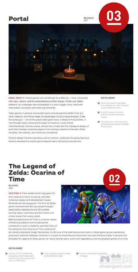 第3——1位:3《传送门》、2塞尔达传说《时之笛》、1《超级马里奥世界》