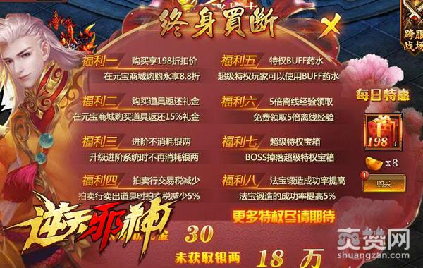 1、198买断不是让玩家花198元买断这个特权,而是充值198元,就能获得买断特权,也就是说,你花了钱不会直接不见,而是转化成元宝还能继续用在别处;