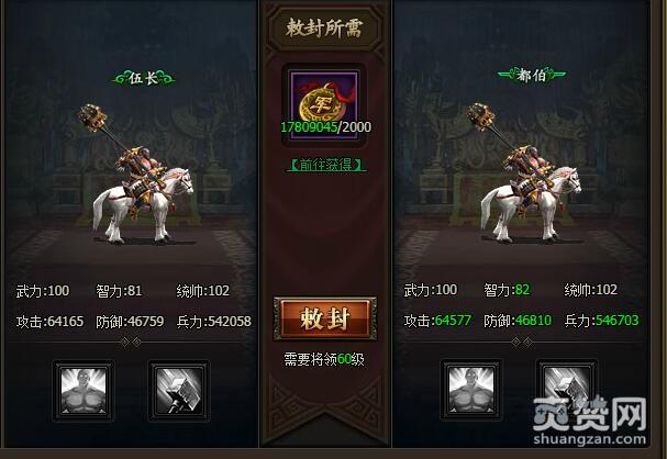 从伍长到都伯 敕封所需军功2000,需要将领60级