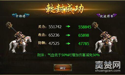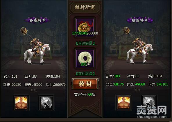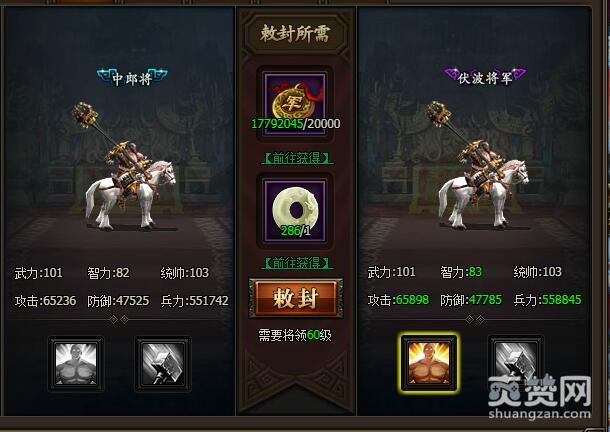 从校尉到中郎将 敕封所需军功10000,需要将领60级