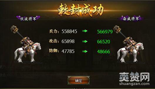 从伏波将军到奋威将军 敕封所需军功40000,美玉2个,需要将领60级