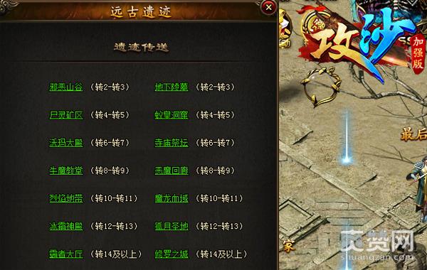 2转之后,可以进入远古遗迹,挑战远古BOSS,获得1转至12转的战印。