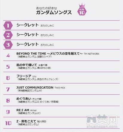 “你最喜欢的高达歌曲”(前三位将会在日后公布)